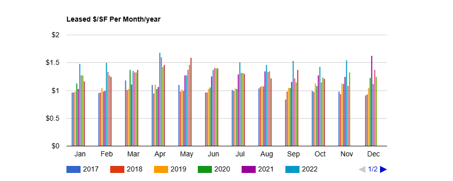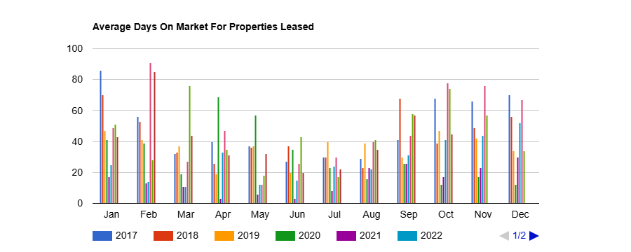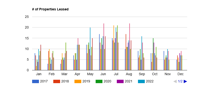 The price per square foot for the properties that were leased in October 2025 averaged $1.21, which is 17 cents less than in September. When I list properties for lease, I always recommend using these charts to determine how long of a lease to offer. You want to end the lease at the best time of year. Because of this, I typically advise against letting clients go month-to-month at the end of a lease. It could cost you a lot if they decide to leave at an unfavorable time of year.