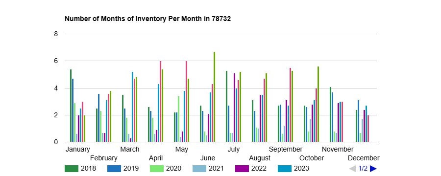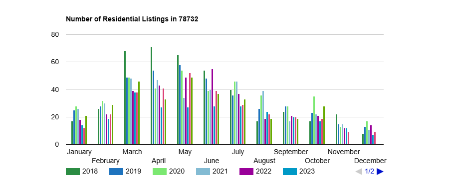 Fourteen properties went pending in 78732 in October, and they took an average of 34 days to go under contract. The 77 listings that are still on the market have been on the market an average of 87 days.